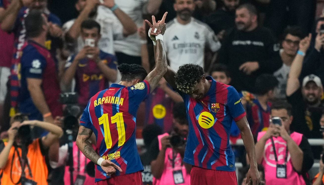 FC Barcelona vs Real Madrid Raphinha Mengamuk, Blaugrana Juara Supercopa Spanyol Usai Taklukkan El Clasico 3-2 di Jeddah, foto:(ap)