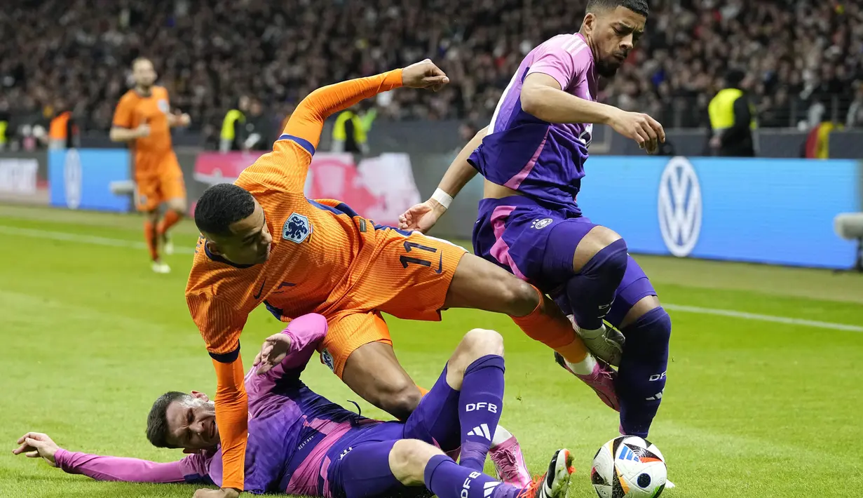 Seketika.com, Jakarta – Jerman sukses meraih kemenangan ketika menjamu Belanda pada laga persahabatan di Stadion Deutsche Bank Park, Frankfurt, Rabu (27/3/2024). Pada pertandingan tersebut Tim Panser menunjukkan pertahanan yang kuat dan apik. Tuan rumah menang dengan skor tipis 2-1. (Foto: AP Photo/Martin Meissner)