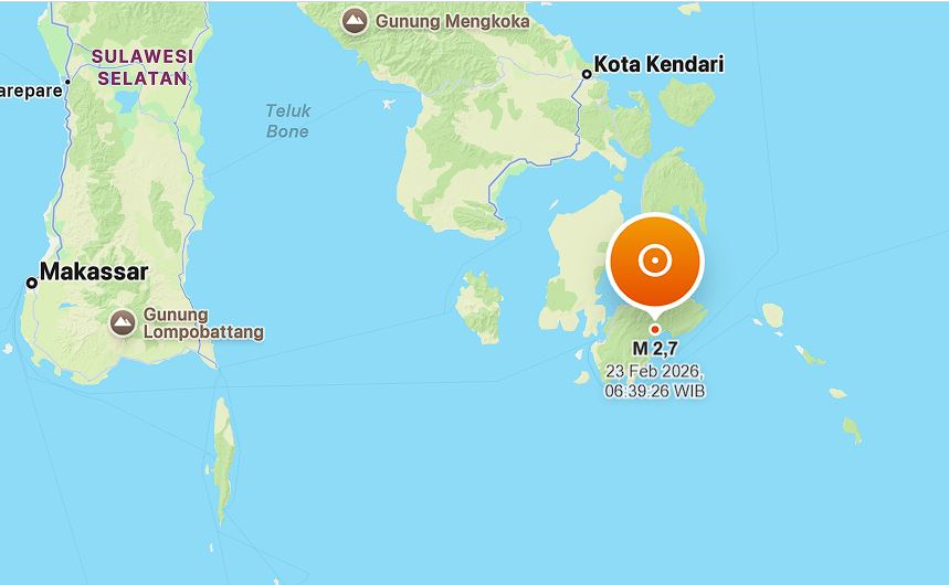 Seketika.com, Jakarta – Gempa bumi berkekuatan magnitudo 2,7 mengguncang wilayah timur Buton, Sulawesi Tenggara, pada Senin (23/2/2026) pukul 06.39.26 WIB. Informasi resmi disampaikan oleh Badan Meteorologi, Klimatologi, dan Geofisika (BMKG).