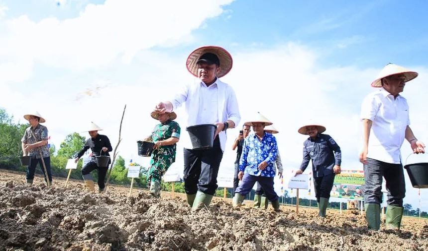 Kegiatan tanam perdana cetak sawah rakyat dilakukan sebagai bentuk percepatan perluasan lahan produktif.