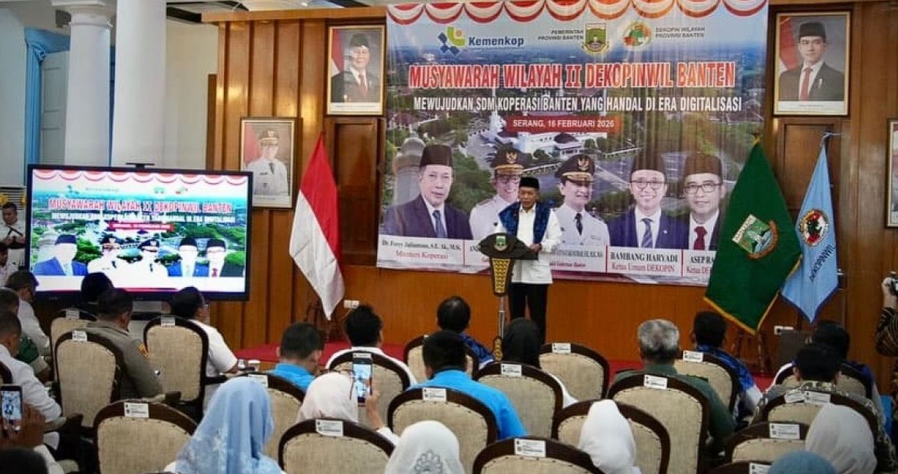 Penegasan itu mengemuka dalam Musyawarah Wilayah II Dewan Koperasi Indonesia (Dekopin) Wilayah Banten di Gedung Negara Provinsi Banten, Kota Serang, Senin (16/2/2026).