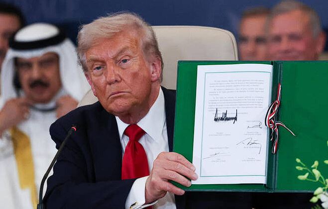 Trump mengklaim, “Dokumen ini akan bertahan,” dan menyebutnya sebagai tonggak penting dalam perundingan damai Timur Tengah.