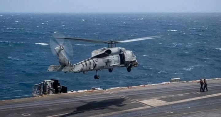 Dalam pernyataannya di media sosial, Angkatan Laut AS menyebutkan bahwa helikopter MH-60R Seahawk jatuh sekitar pukul 14.45 waktu setempat ketika sedang beroperasi dari kapal induk USS Nimitz.