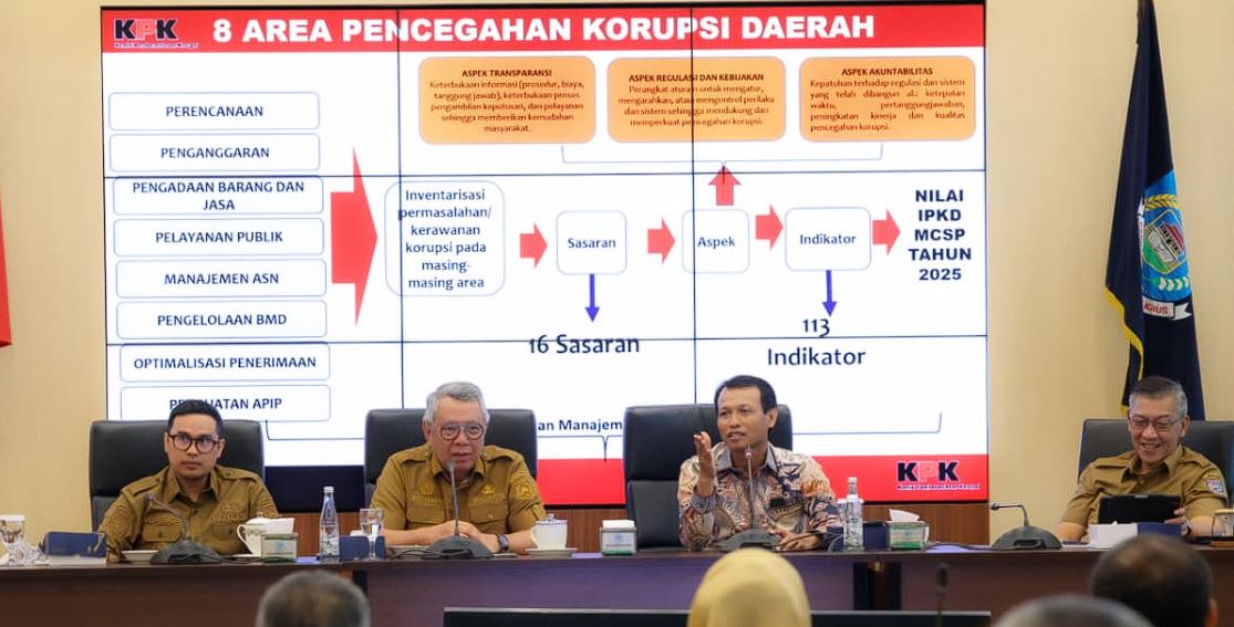 Dalam kegiatan Rapat Koordinasi Tata Kelola Pemerintah Daerah Kota Tangerang Selatan – Indeks Pencegahan Korupsi Daerah (IKPD) dan Monitoring Center for Prevention (MCP) 2025, Wali Kota Tangerang Selatan, Benyamin Davnie, menegaskan komitmen Pemkot Tangsel dalam memperkuat delapan area utama pencegahan korupsi.