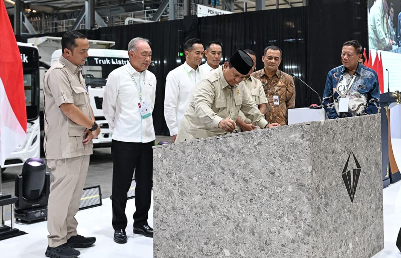 “Dengan mengucap bismillahirrahmanirrahim, pada siang hari ini, Kamis, 9 April 2026, saya Prabowo Subianto Presiden Republik Indonesia, dengan ini meresmikan Pabrik Perakitan Kendaraan Komersial Berbasis Listrik VKTR,” ucap Presiden Prabowo.