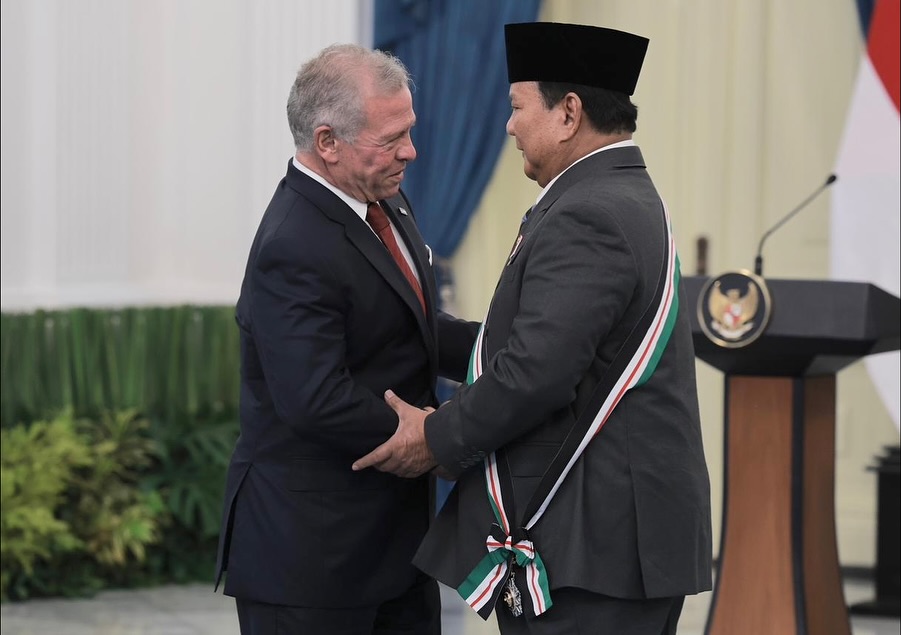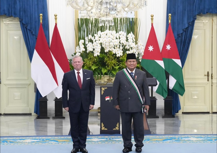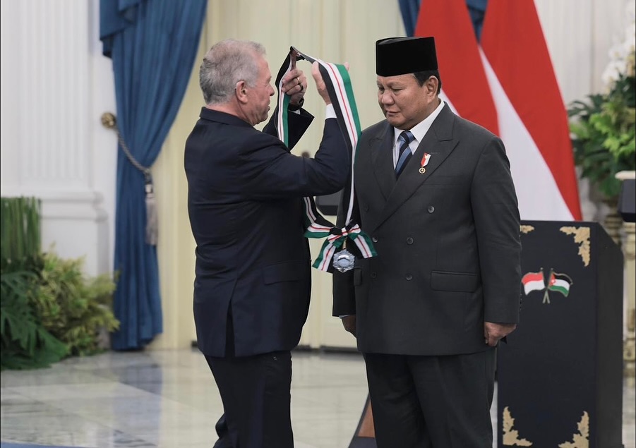 Seketika.com, Jakarta – Presiden Republik Indonesia Prabowo Subianto menerima penghargaan “The Bejewelled Grand Cordon of Al Nahda (Order of the Renaissance)” dari Raja Kerajaan Yordania Hasyimiah, Raja Abdullah II ibn Al Hussein. Penghargaan ini diberikan langsung oleh Raja Abdullah II ibn Al Hussein dalam kunjungan kenegaraannya ke Indonesia, pada Jumat, 14 November 2025, dalam sebuah acara yang berlangsung di Istana Merdeka, Jakarta.