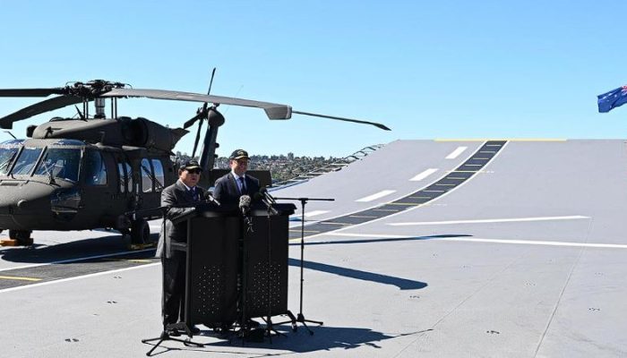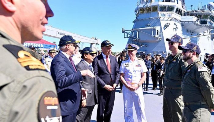 “Saya berterima kasih kepada Kepala Staf Angkatan Laut dan Kapten HMAS Canberra, serta seluruh personel angkatan laut yang telah menyambut kami di sini dan membantu menyelenggarakan kunjungan hari ini,” ucap PM Albanese.
