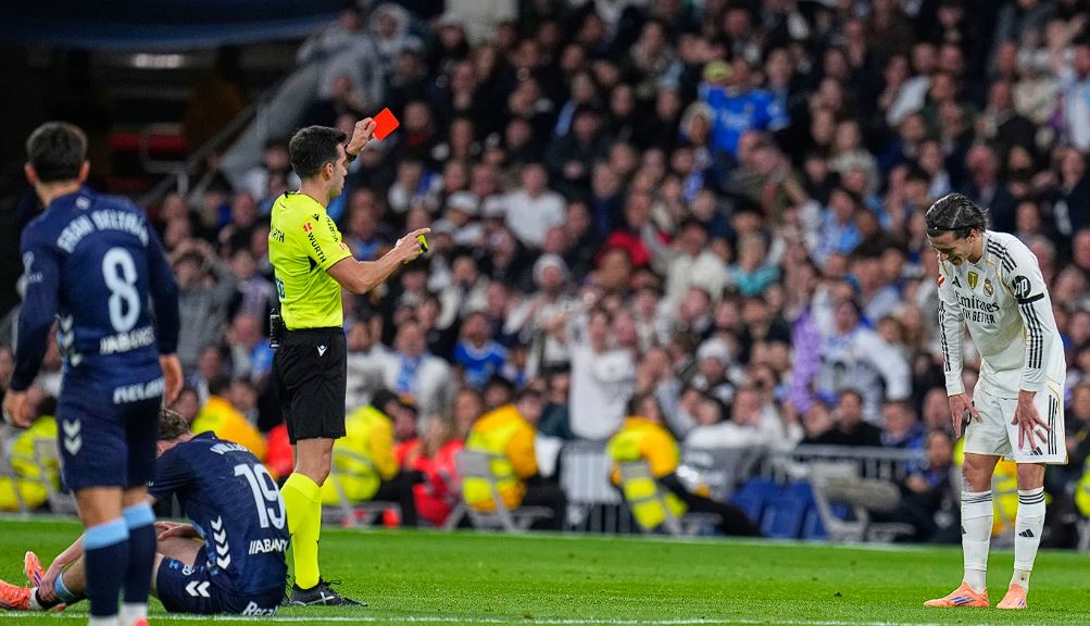 Dua kartu merah yang diterima Fran García dan Álvaro Carreras membuat Madrid bermain dengan sembilan pemain.